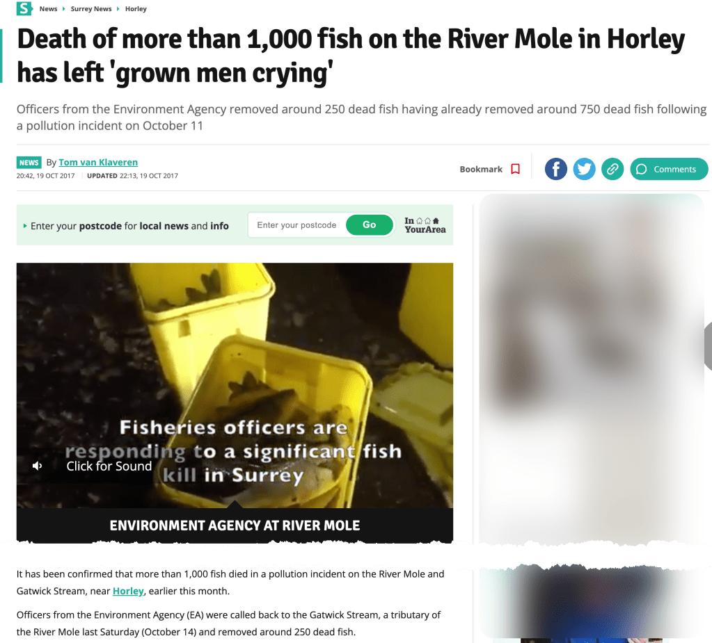 Whilst there are uncertainties over the “live” level of pollution, there is no doubt at all that raw sewage is highly polluting and if discharged into rivers has the potential to kill fish or cause longer-term damage to the ecosystem. Sadly there have been several acute incidents where this has happened on the River Mole.