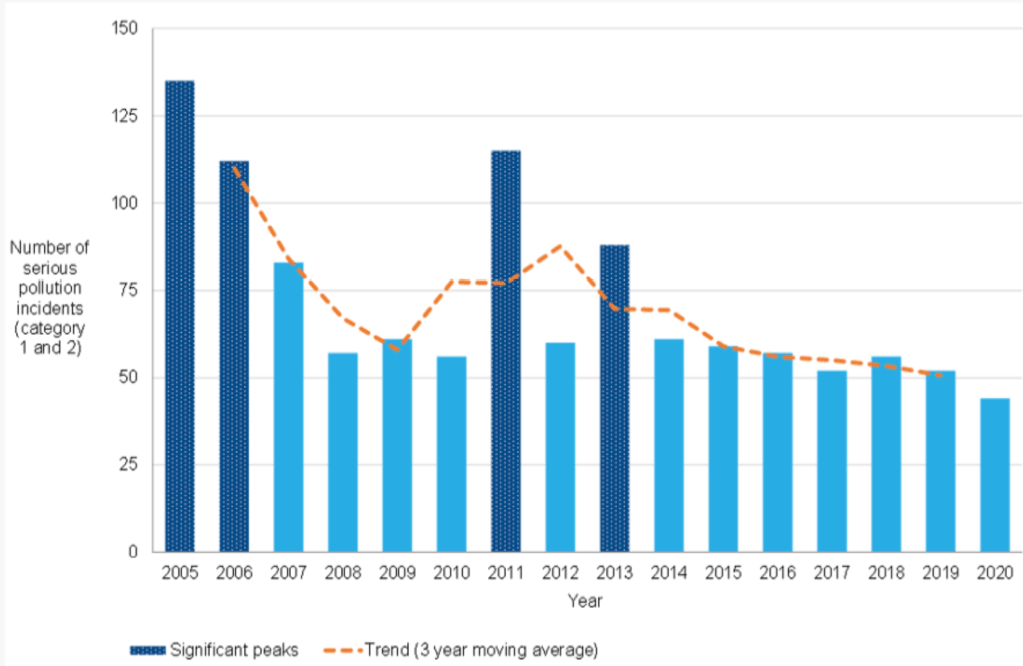 The number of serious water quality pollution incidents from water company sewerage assets continued to be unacceptable.