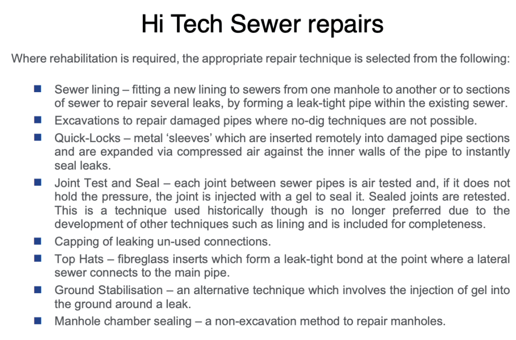 Groundwater infiltration into sewers: During excessively wet winters, some areas are affected by groundwater infiltration into sewers. Excess groundwater entering the sewers can occupy a high proportion of the sewer system capacity and prevents sewage from being conveyed to the treatment works. During these conditions, some customers suffer restriction in use of their bathroom, toilet and kitchen facilities.