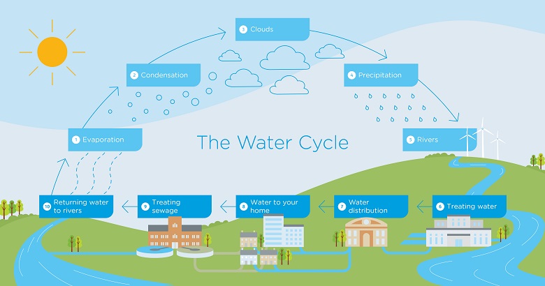 So, a fresh holistic view of our water supply and waste water treatment process and flood protection as a whole system is needed. Following a raindrop through this cycle with a school-style flow diagram of the water cycle is helpful! Many of these solutions are covered below.