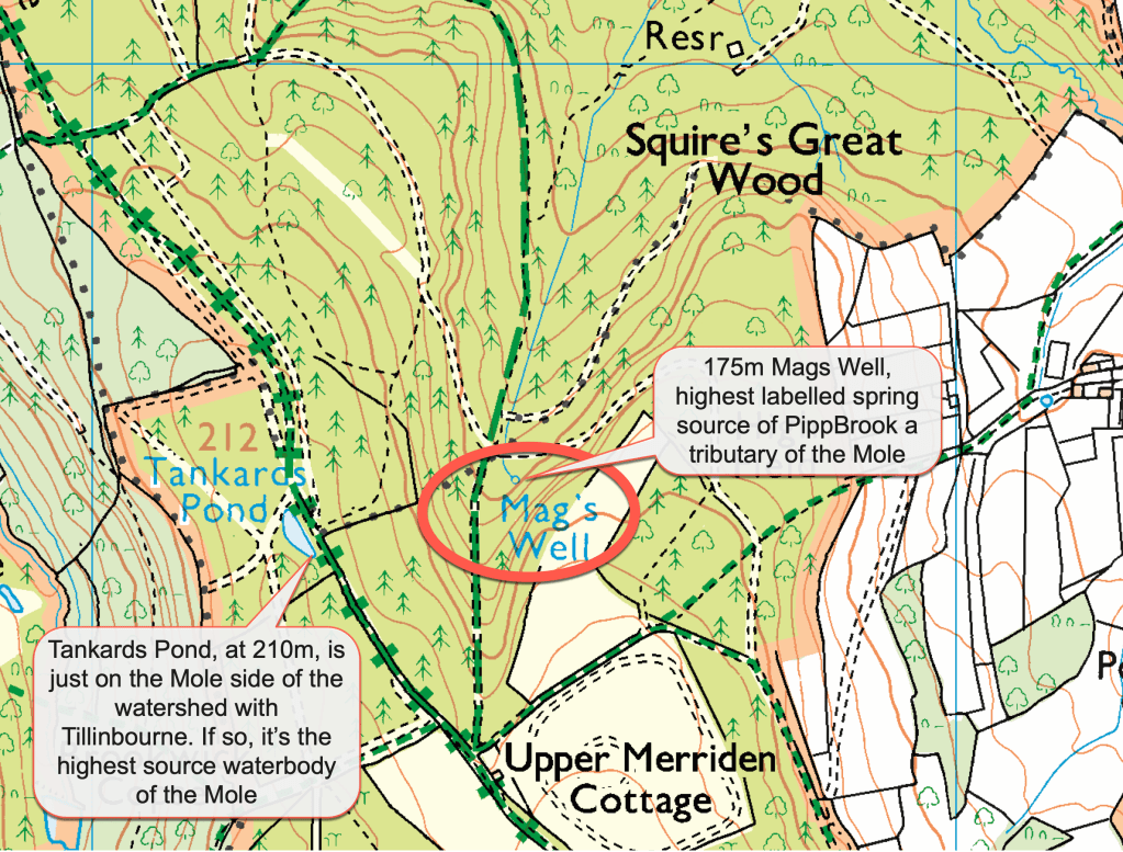 Pipp Brook lays claim to being the most elevated tributary on the Mole catchment, rising at the highest altitude of any source at just over 200m.