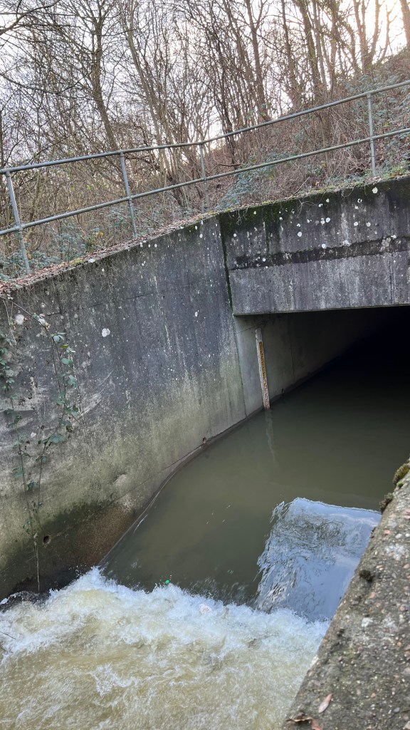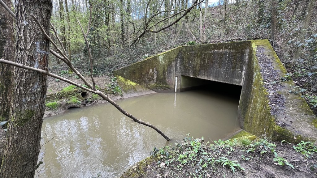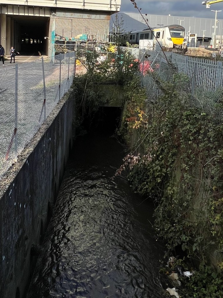 Unfortunately, at just over 600m in length, the improvements at Grattons Park are a modest scale and the stresses on the river are returned to all too quickly on leaving the park where it is culverted under the formidable A2011. Before and after entering the culvert a cocktail of toxic road runoff discharges unimpeded into the stream via roadside ditches that collect runoff from the A2011.