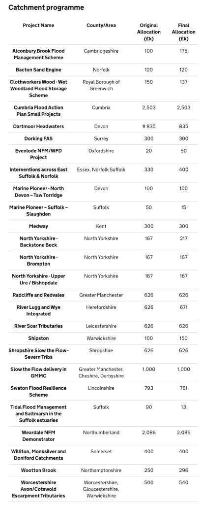 A list of Pilot NFM schemes in England