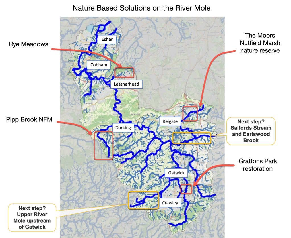 Before we tour the leaky dams, let’s review flood defences in the Mole catchment and ask why we need NFMs at all. This will put the Pipp Brook NFM in context.