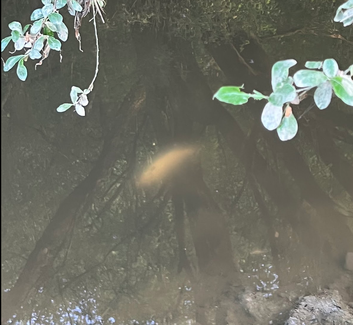 Further upstream, in wider, deeper slow flowing pools, groups of larger fish were seen vertically “dangling” and floating in circular motion mid-stream with mouths gaping above the surface. I’m not an angler or fish expert but their behaviour seemed far from normal and these fish appeared to be severely stressed.