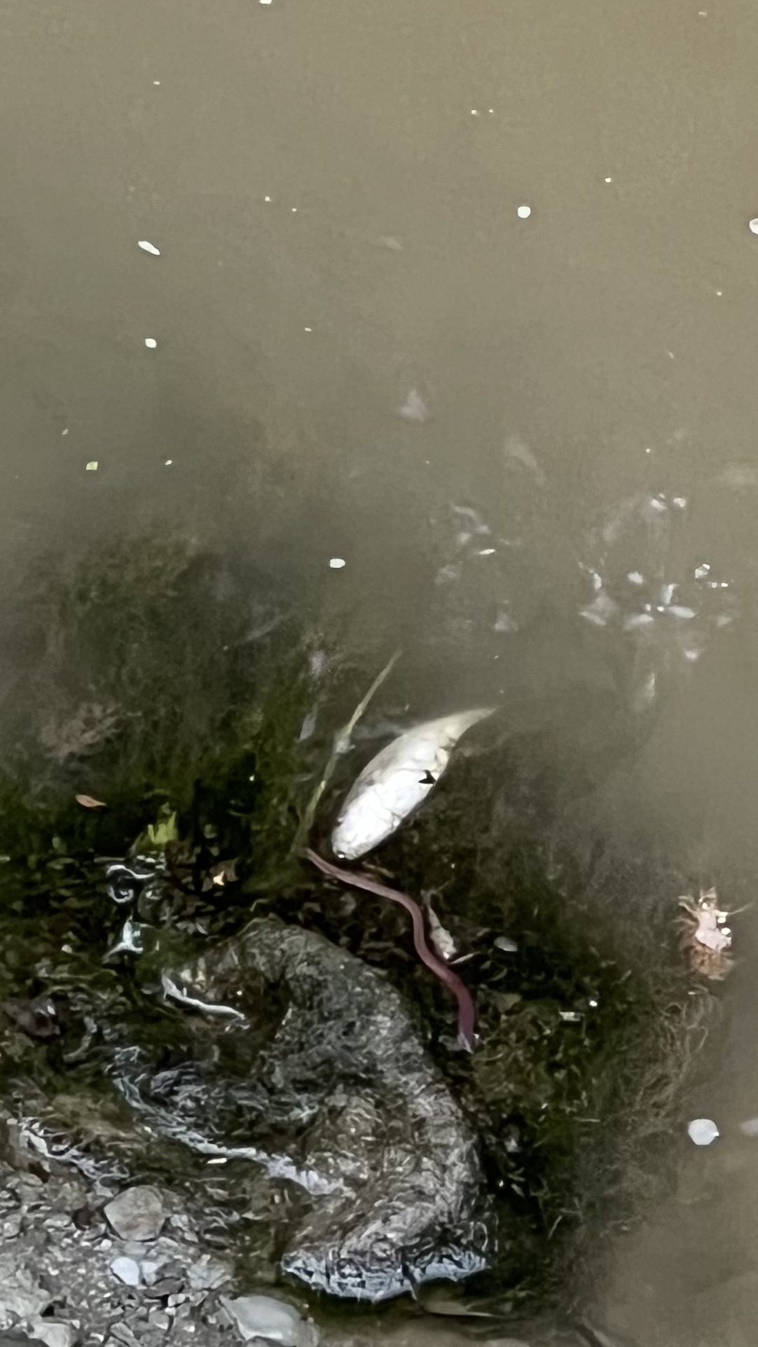 On my second visit to the site the interventions appeared to be working as I observed no fish struggling at all and, while there were some dead fish here and there probably from the day before, we also saw some lively fish darting around in shallower riffles so the appearance seemed to me more healthy. I had helpful conversations with both teams and the Environment Agency and, as usual, found everyone very helpful and willing to share information and understanding of the incident. This kind of transparency with the public is absolutely the way forward so that we can cooperate together to identify issues and solve problems. I would like to extend my thanks to those who attended, some of whom did shifts overnight night.