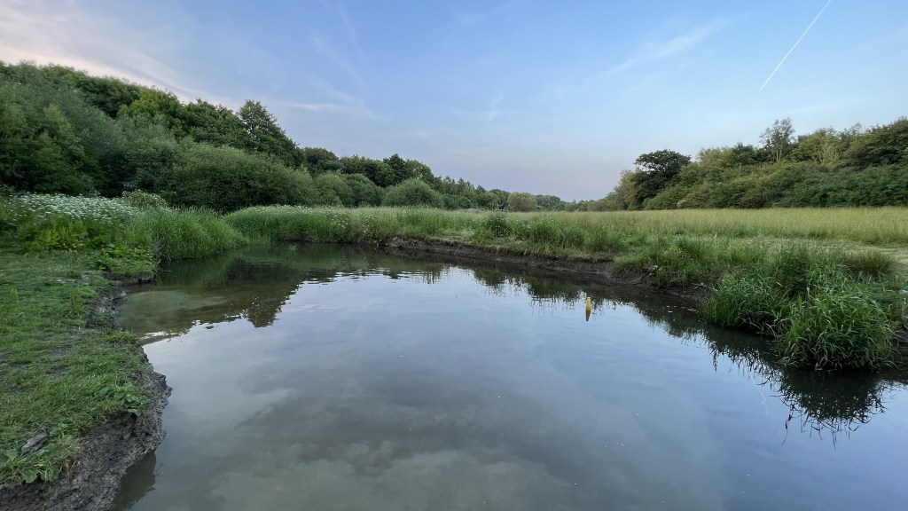 Despite being adjacent to the airport, in normal times, this is a splendid stretch of river and is part of Gatwick’s “North West Biodiversity Zone”. It has become a lush wildlife corridor with light woodland, grassland and meadows and a reasonably meandering channel with some attractive riffles and pools.