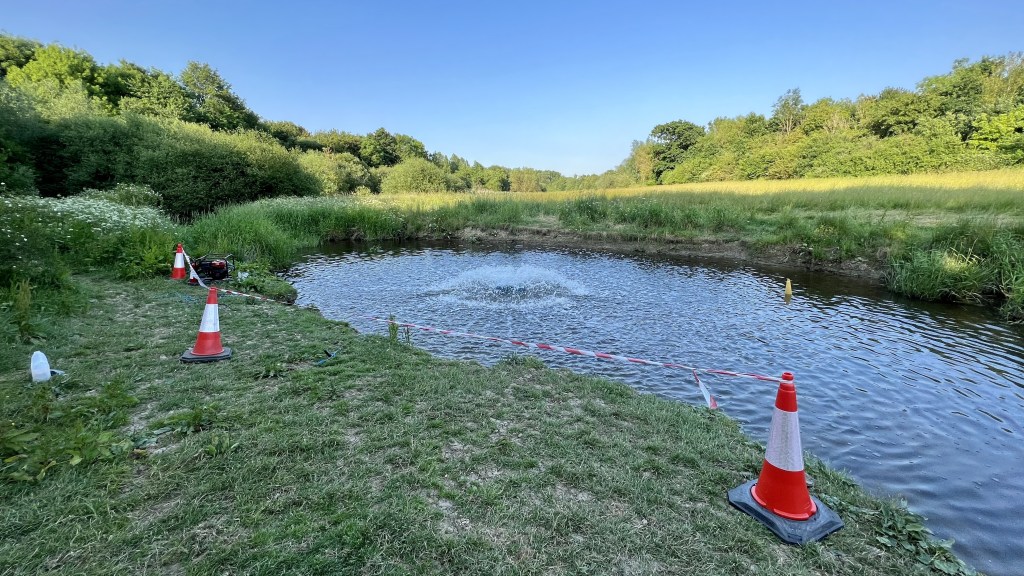 Emergency measures to mitigate the impact of die-off were initially carried out by Gatwick Airport. Their team was first on the scene with re-oxygenation pumps running 24/7 from the afternoon of Monday 12 June. A team from Thames Water arrived later at 3:00am on Tuesday 13 June with two pumps spaced at intervals upstream from the larger LGW pump.